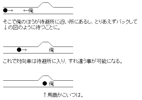 だったら、待避所の手前で停まってお前が入れとジェスチャーでもすればいい。