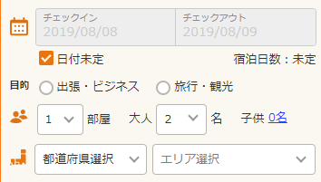 ホテル予約サイトの検索 [1 ▽]部屋:大人[2 ▽]人 ← これやめろ